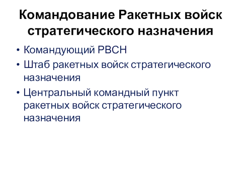Командование Ракетных войск стратегического назначенияКомандующий РВСНШтаб ракетных войск стратегического назначенияЦентральный командный пункт ракетных войск стратегического назначения