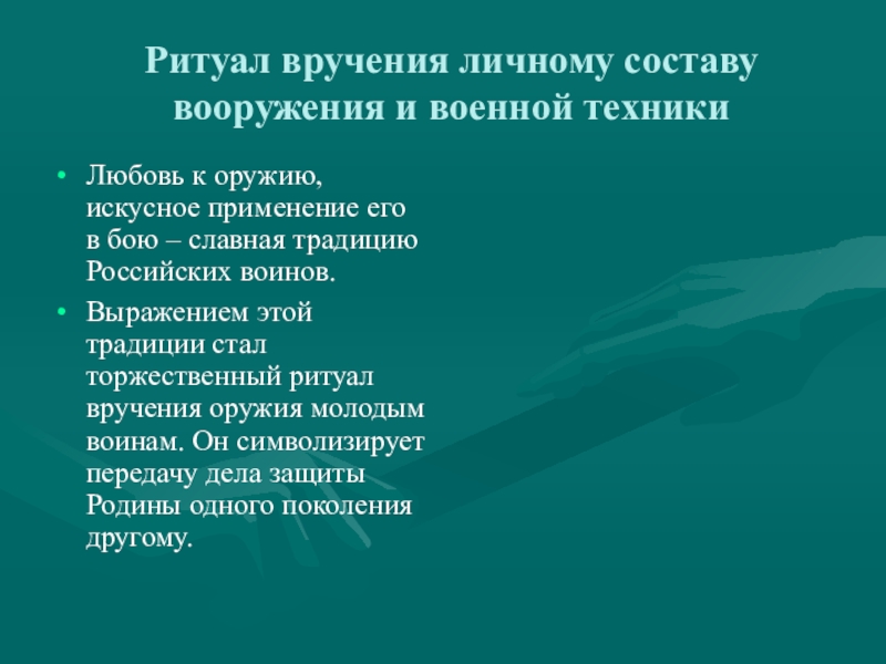 Слайд 7Ритуал вручения личному составу вооружения и военной техники