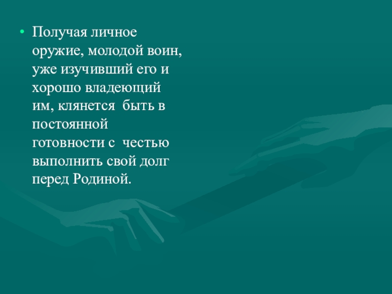 Слайд 8Получая личное оружие, молодой воин, уже изучивший его и хорошо владеющий