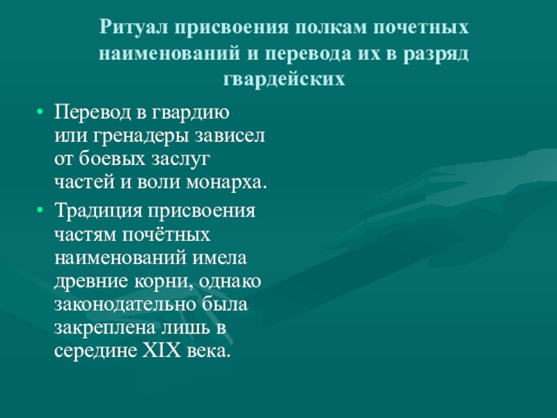 Слайд 5Ритуал присвоения полкам почетных наименований и перевода их в разряд гвардейских
