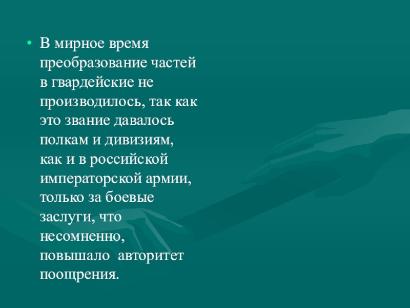 Слайд 6В мирное время преобразование частей в гвардейские не производилось, так как