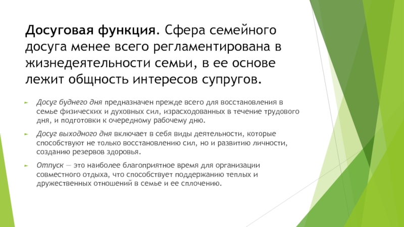 Досуг буднего дня предназначен прежде всего для восстановления в семье физических и духовных сил, израсходованных в течение трудового дня, и подготовки к очередному рабочему дню.