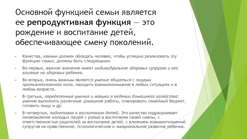 Качества, какими должен обладать человек, чтобы успешно реализовать эту функцию семьи, должны быть следующими.