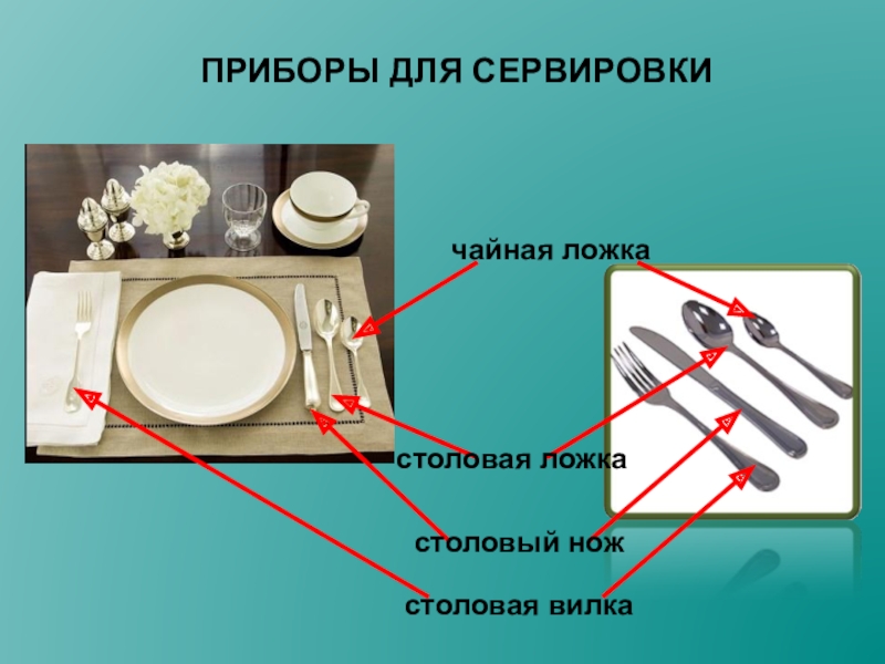 чайная ложкастоловая ложкастоловый ножстоловая вилкаПРИБОРЫ ДЛЯ СЕРВИРОВКИ
