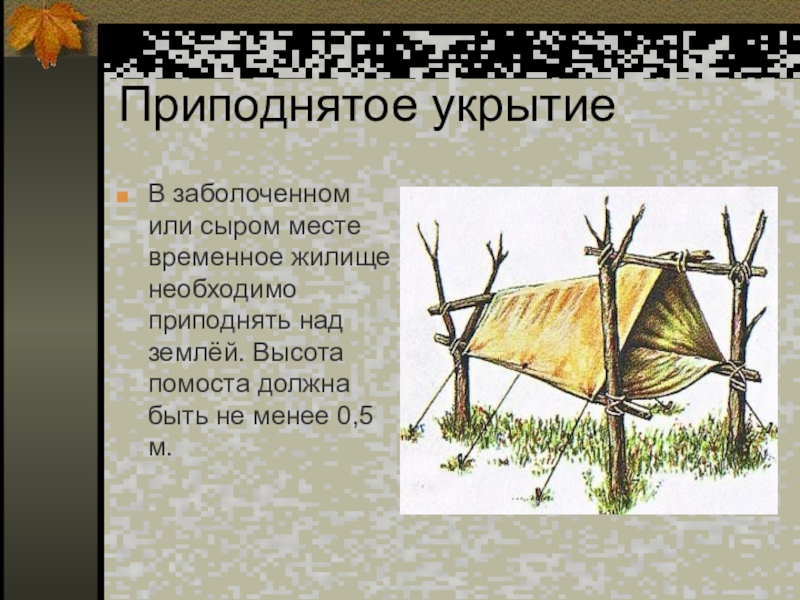 В заболоченном или сыром месте временное жилище необходимо приподнять над