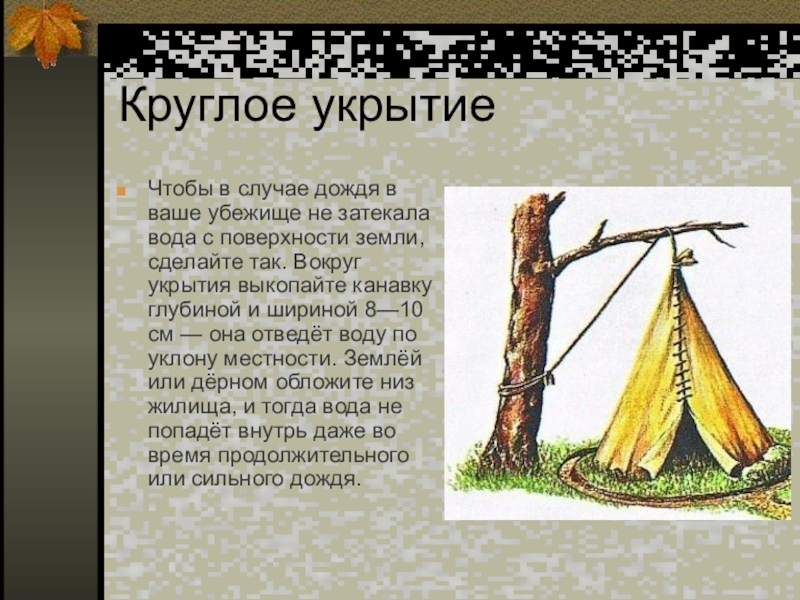 Чтобы в случае дождя в ваше убежище не затекала вода