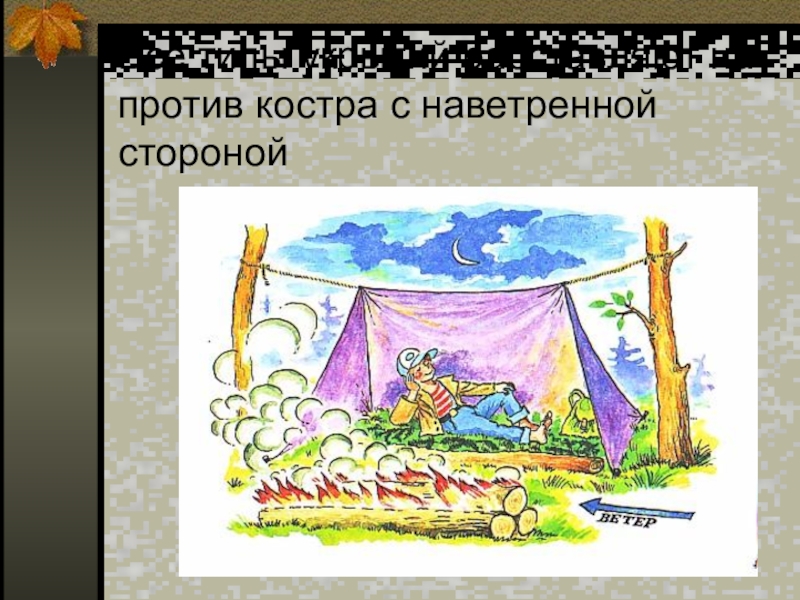 Слайд 8Все типы укрытий расставляют на против костра с наветренной стороной