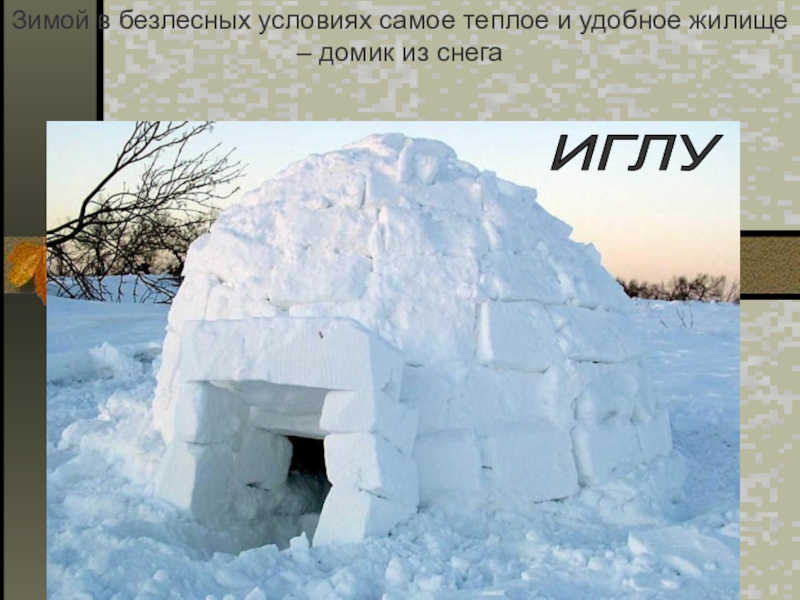 Слайд 27Зимой в безлесных условиях самое теплое и удобное жилище – домик