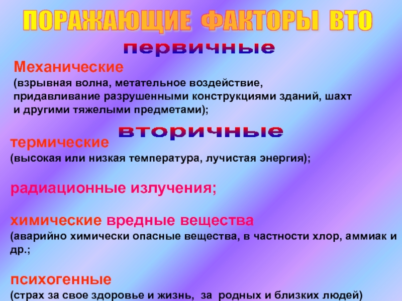 ПОРАЖАЮЩИЕ ФАКТОРЫ ВТО