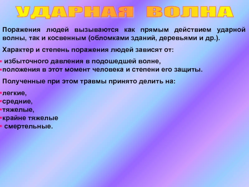 (взрывная волна, метательное воздействие,