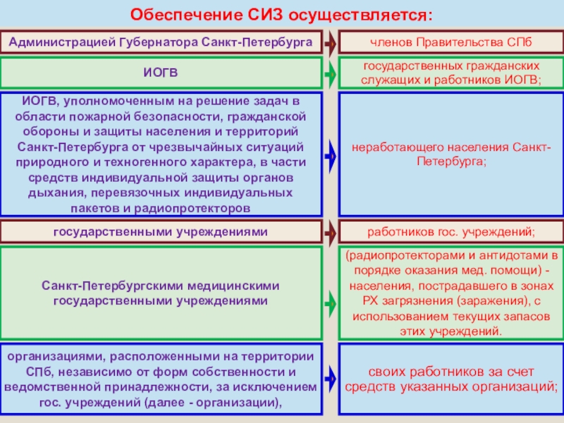 Обязательному обеспечению СИЗ за счет средств бюджета Санкт-Петербурга подлежат следующие категории населения: