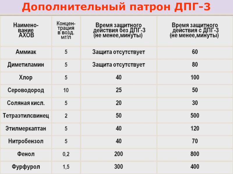 - Обеспечивает защиту от оксида углерода от 2 до 5 часов (при температуре от-30 до 40с), а так же от аммиака, хлора и других АХОВ.