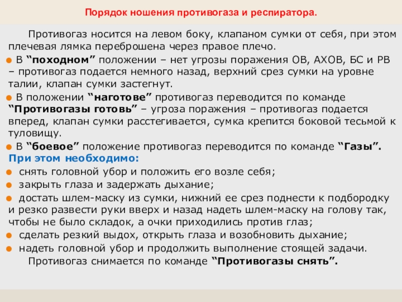 Порядок подготовки средств индивидуальной защиты органов дыхания: