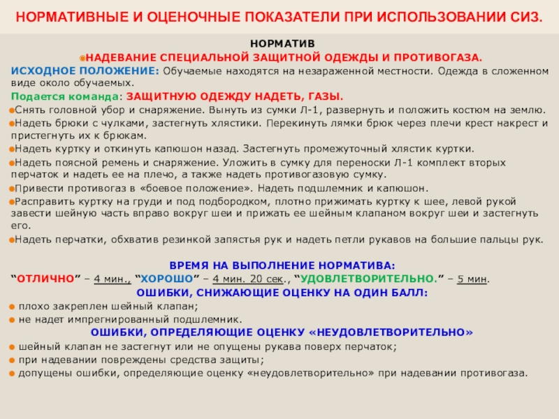 НОРМАТИВНЫЕ И ОЦЕНОЧНЫЕ ПОКАЗАТЕЛИ ПРИ ИСПОЛЬЗОВАНИИ СИЗ.