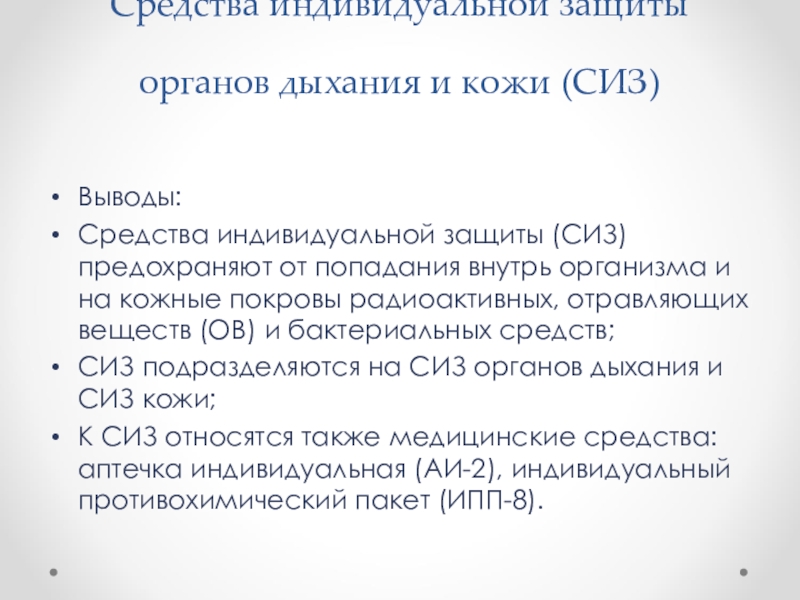 Слайд 7Средства индивидуальной защиты органов дыхания и кожи (СИЗ)