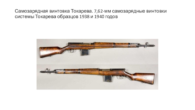 Слайд 9Самозарядная винтовка Токарева. 7,62-мм самозарядные винтовки системы Токарева образцов 1938 и