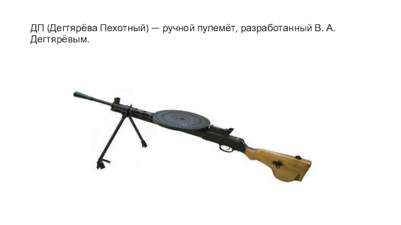 Слайд 17ДП (Дегтярёва Пехотный) — ручной пулемёт, разработанный В. А. Дегтярёвым.