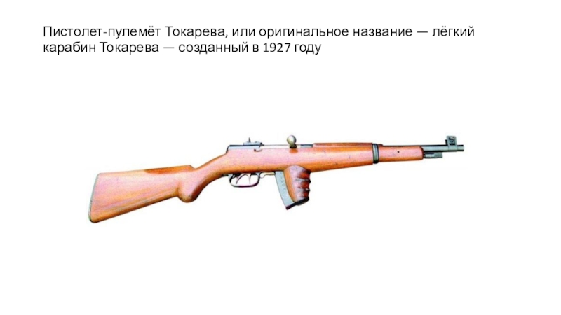 Слайд 11Пистолет-пулемёт Токарева, или оригинальное название — лёгкий карабин Токарева — созданный