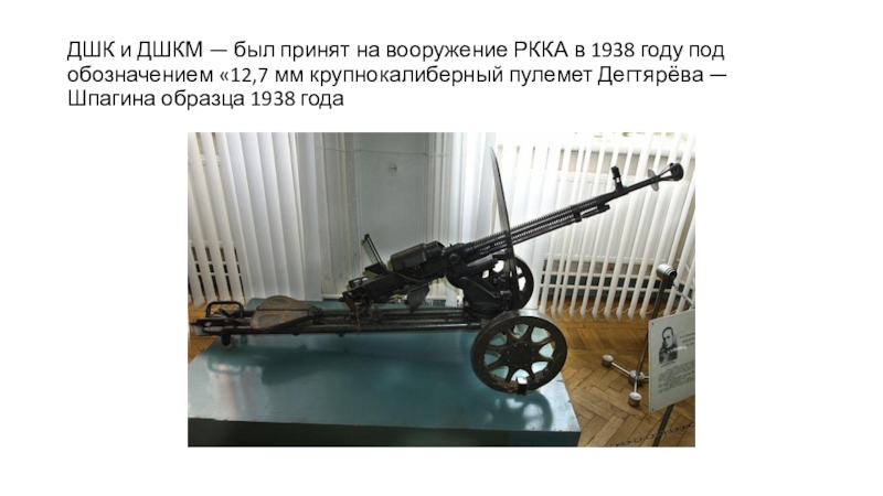 Слайд 21ДШК и ДШКМ — был принят на вооружение РККА в 1938