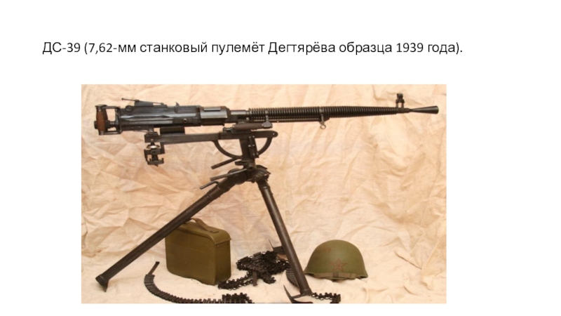 Слайд 19ДС-39 (7,62-мм станковый пулемёт Дегтярёва образца 1939 года).