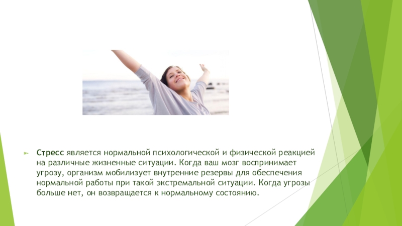 Слайд 3Стресс является нормальной психологической и физической реакцией на различные жизненные ситуации. Когда