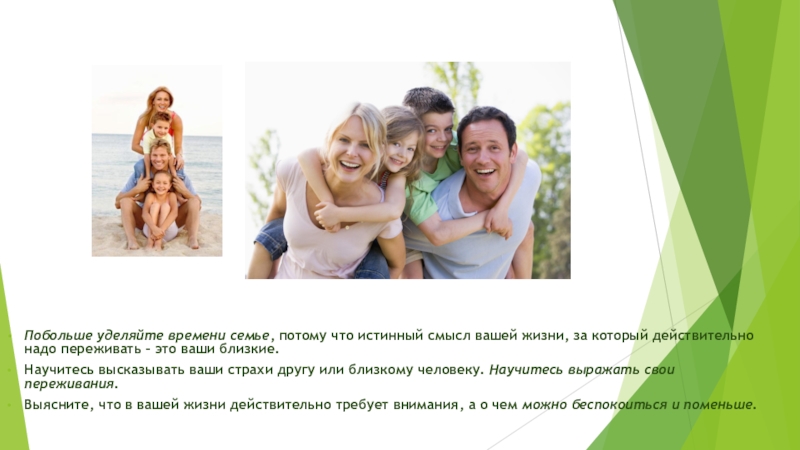 Слайд 11Побольше уделяйте времени семье, потому что истинный смысл вашей жизни, за