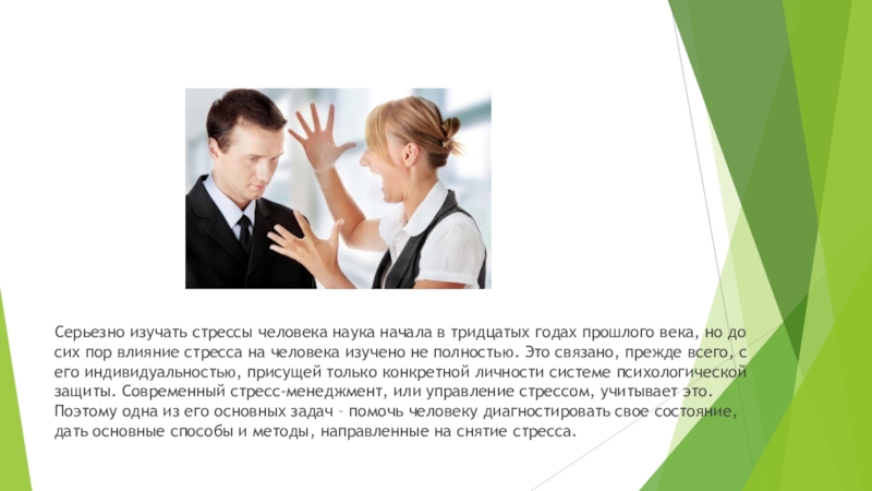 Слайд 5Серьезно изучать стрессы человека наука начала в тридцатых годах прошлого века,