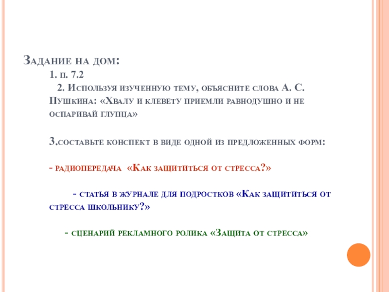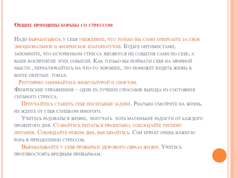 3.Сформулировать общие принципы борьбы со стрессом для обеспечения психологической уравновешенности и сохранения здоровья.