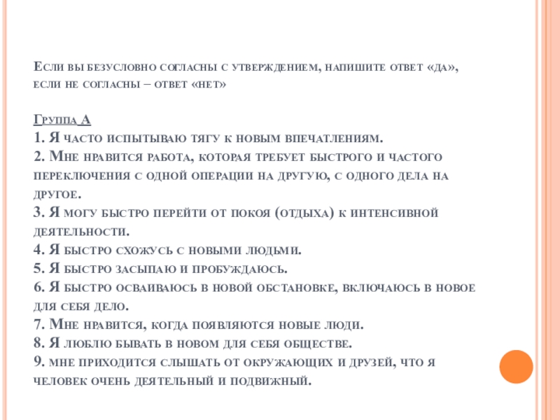 Слайд 16Если вы безусловно согласны с утверждением, напишите ответ «да», если не
