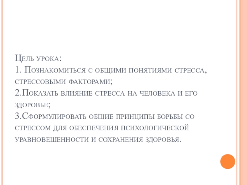 1. Познакомиться с общими понятиями стресса, стрессовыми факторами;