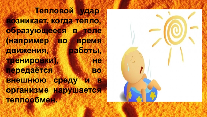 Слайд 12 Тепловой удар возникает, когда тепло, образующееся в теле