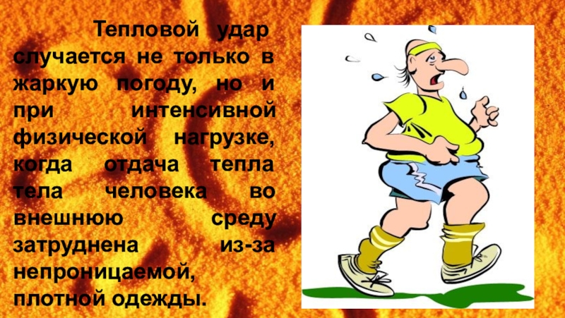 Слайд 13 Тепловой удар случается не только в жаркую погоду,