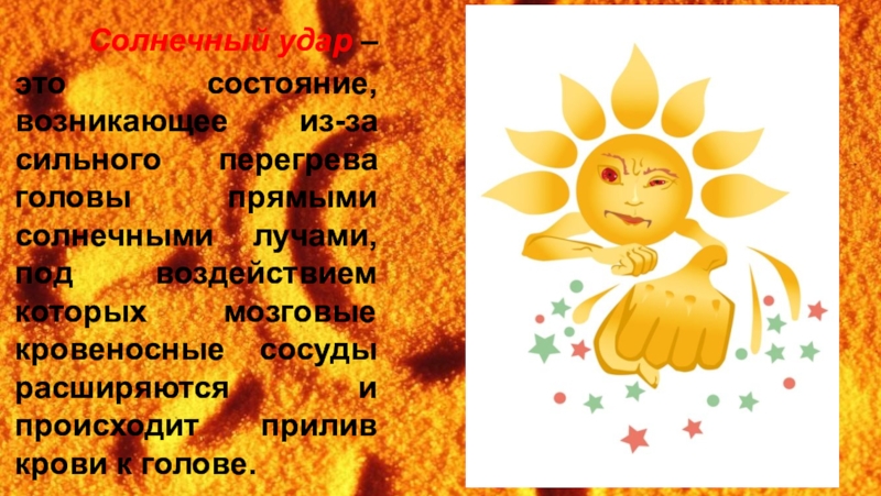 Слайд 2 Солнечный удар – это состояние, возникающее из-за сильного