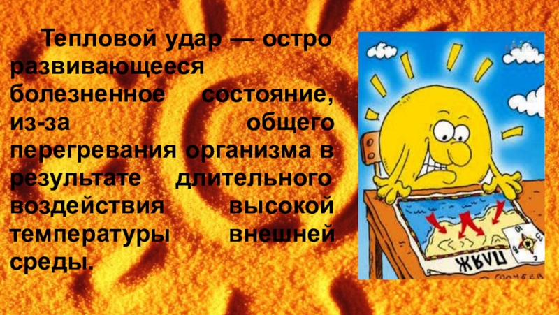 Слайд 11 Тепловой удар — остро развивающееся болезненное состояние, из-за общего
