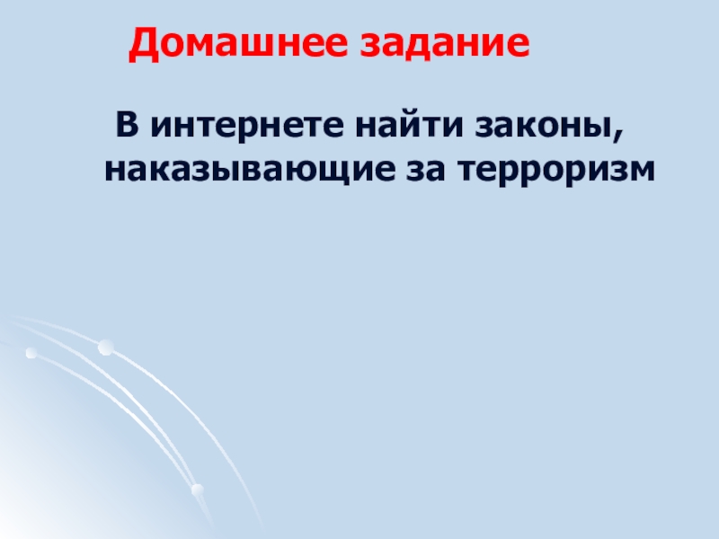 Домашнее задание     В интернете найти законы, наказывающие за терроризм