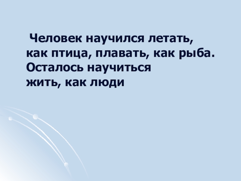 Человек научился летать, как птица, плавать, как рыба.Осталось научиться жить, как люди