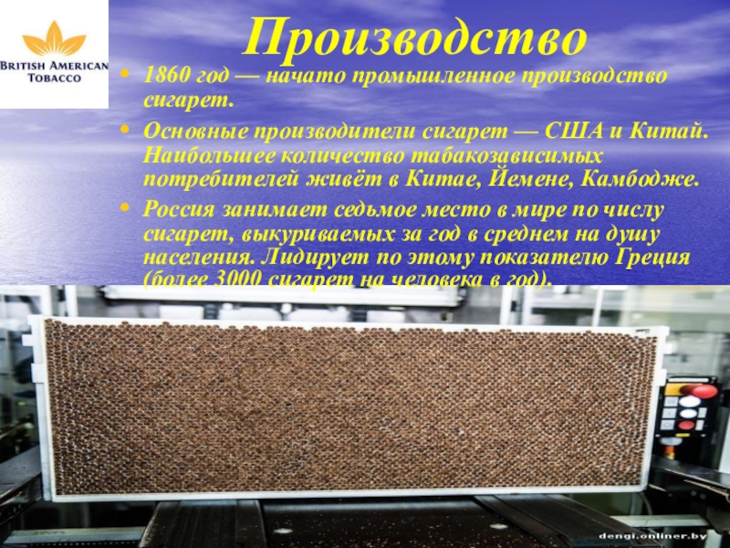 и Китай. Наибольшее количество табакозависимых потребителей живёт в Китае, Йемене, Камбодже.