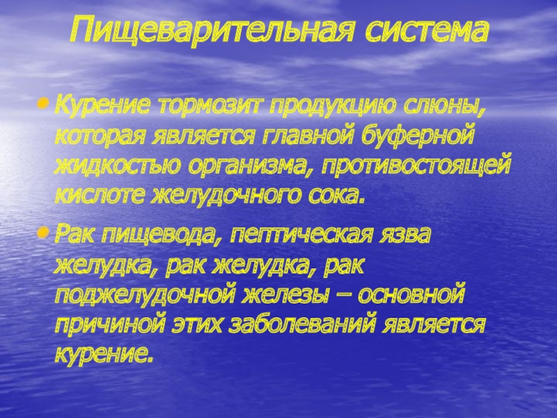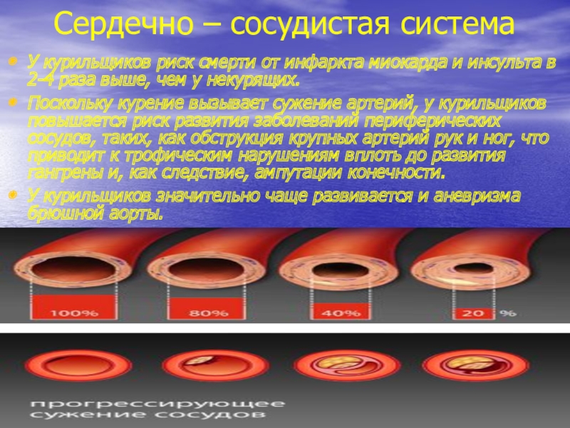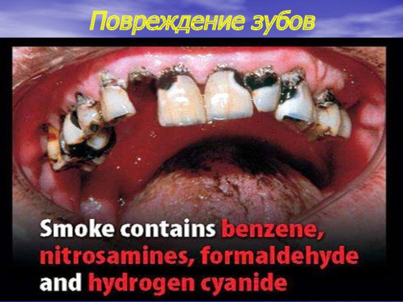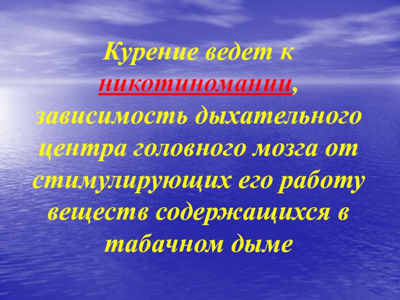 Слайд 14Курение ведет к никотиномании, зависимость дыхательного центра головного мозга от стимулирующих