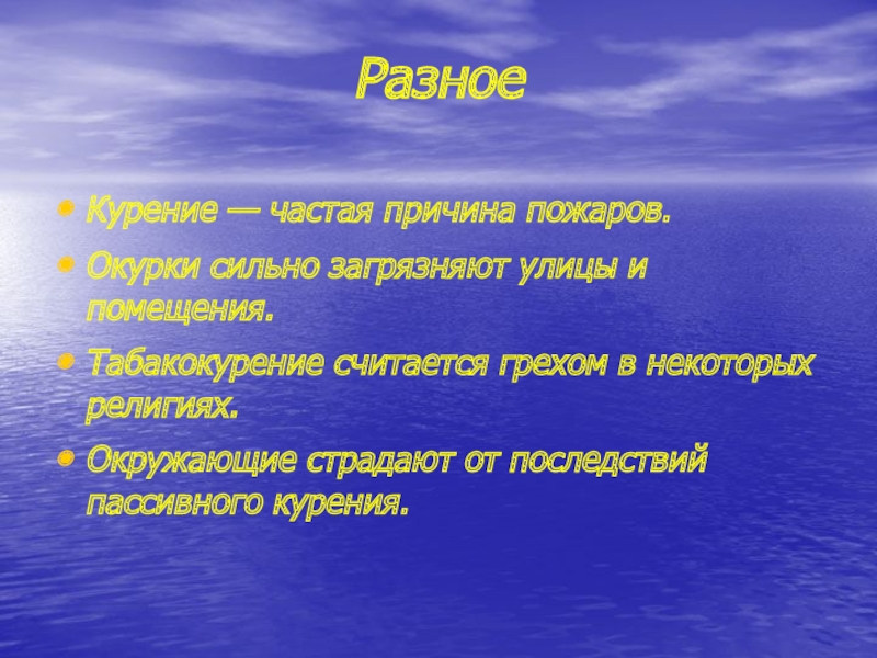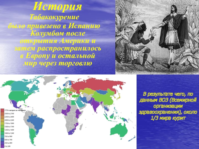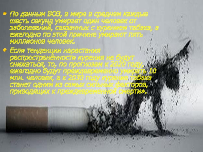 В результате чего, по данным ВОЗ (Всемирной организации здравоохранения), около 1/3 мира курит