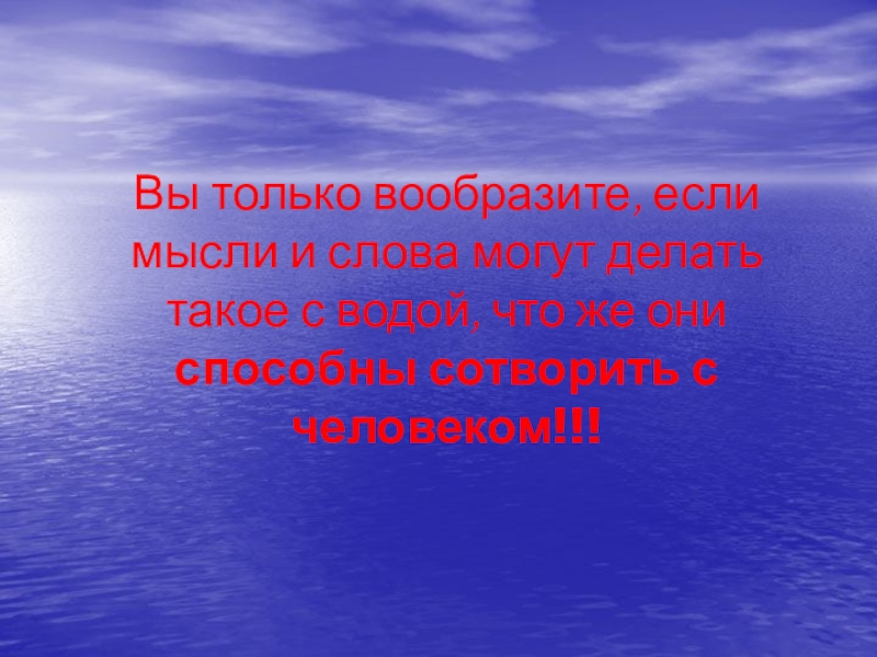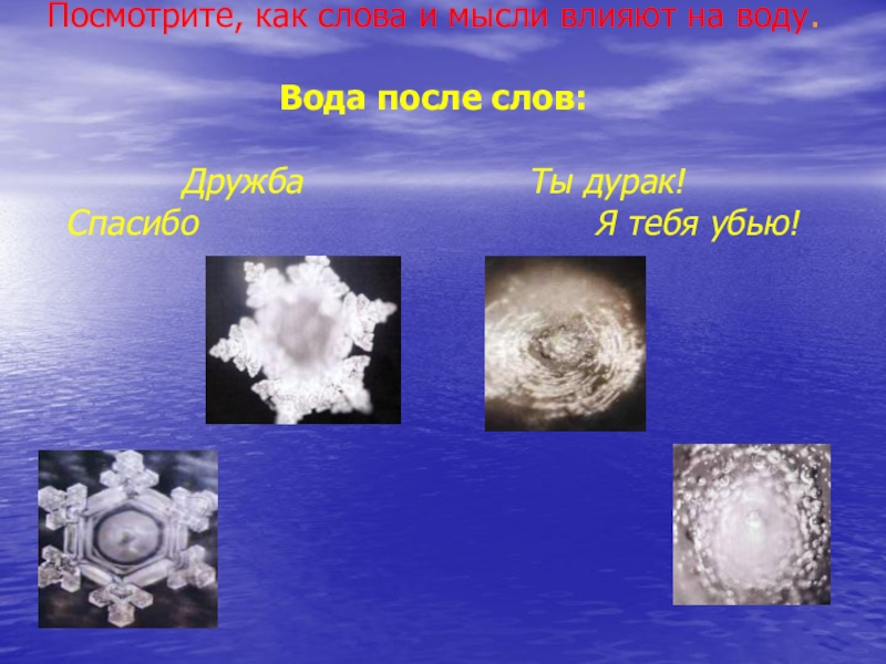 Слайд 151Посмотрите, как слова и мысли влияют на воду.
