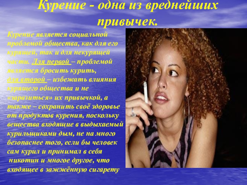 общества, как для его курящей, так и для некурящей части. Для первой – проблемой является бросить курить,