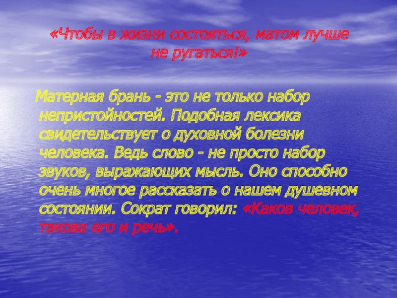 Слайд 144«Чтобы в жизни состояться, матом лучше не ругаться!»