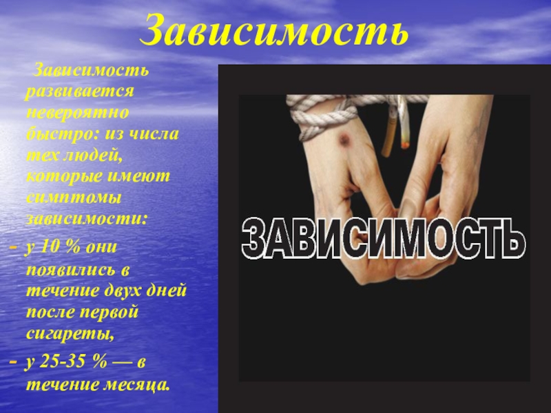Также известно, что никотин больше, чем какие бы то ни было другие вещества, обладает способностью вызывать психологическую зависимость