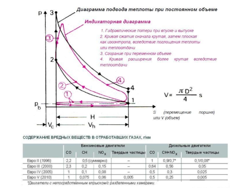 • Подача топлива. Увеличение давления впрыскивания при данном диаметре распыливающих отверстий позволяет позже начинать впрыскивание, оставляя неизменным его окончание, в результате чего уменьшаются выброс NOх, и дымность ОГ. При подвпрыскивании в цилиндр дополнительно подается небольшое количество топлива, которое плохо распыливается и сгорает на пинии расширения с образованием СО, СН и сажи. После посадки иглы на седло пузырьки газа в подыгольном объеме расширяются в результате подогрева и вытесняют топливо в камеру сгорания, где создается локальное обогащение смеси на ходе расширения, что приводит к увеличению выброса СН. Особенно это заметно в дизелях с камерой сгорания в поршне, у которых подыгольный объем Vи составляет 0,3...5 мм3.