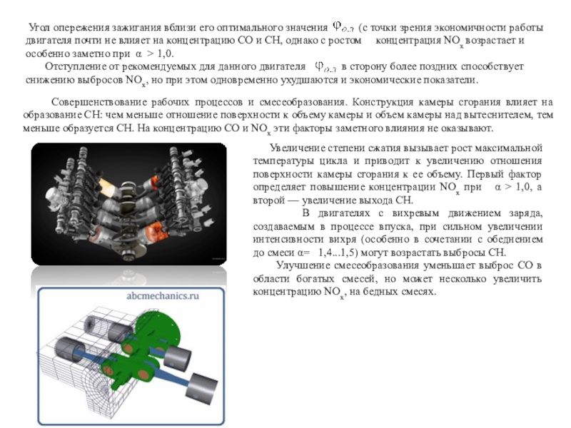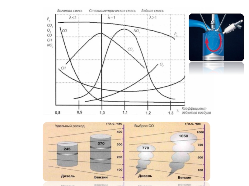 Улучшение смесеобразования уменьшает выброс СО в области богатых смесей, но может несколько увеличить концентрацию NOx, на бедных смесях.