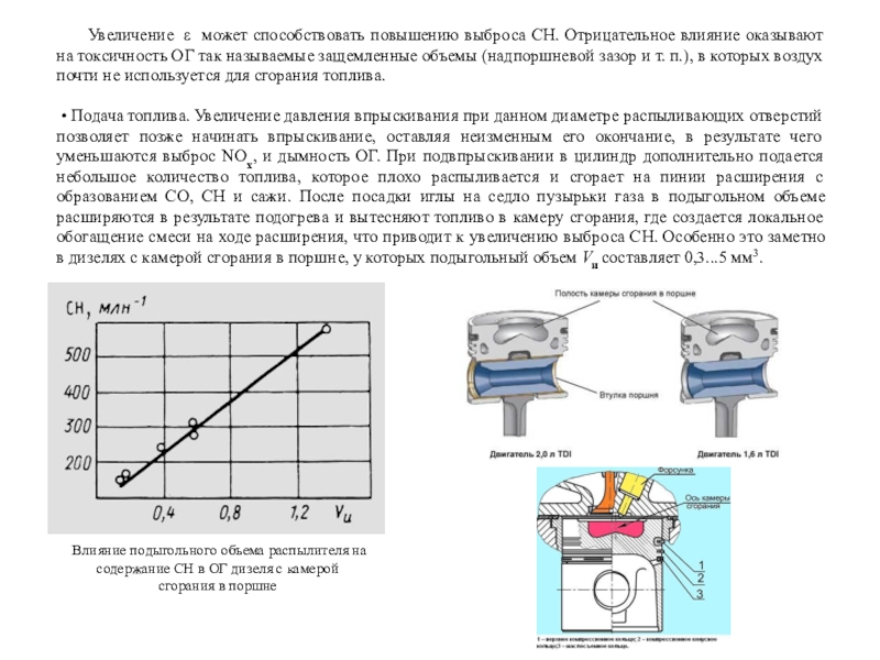влияние оказывают на токсичность ОГ так называемые защемленные объемы (надпоршневой зазор и т. п.), в которых воздух почти не используется для сгорания топлива.