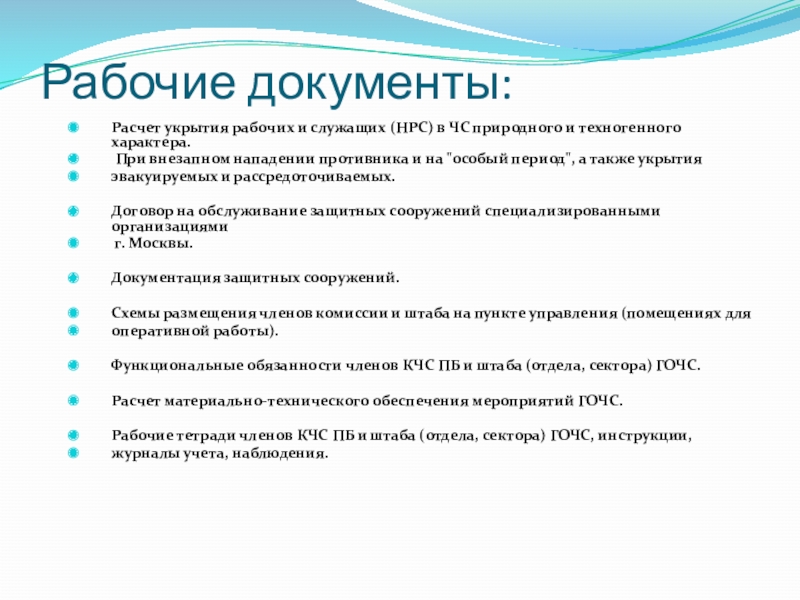 Планирующие документы текущей работы КЧС и ПБ, штаба ГОЧС: