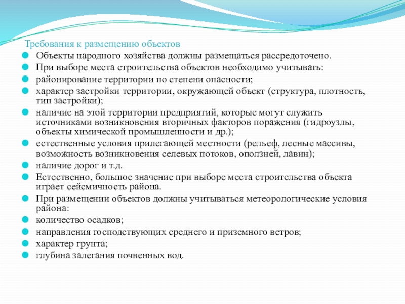 Объекты народного хозяйства должны размещаться рассредоточено.