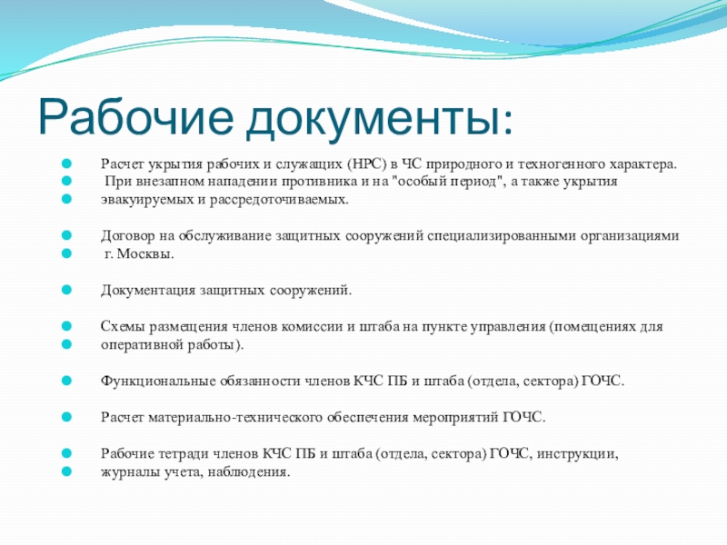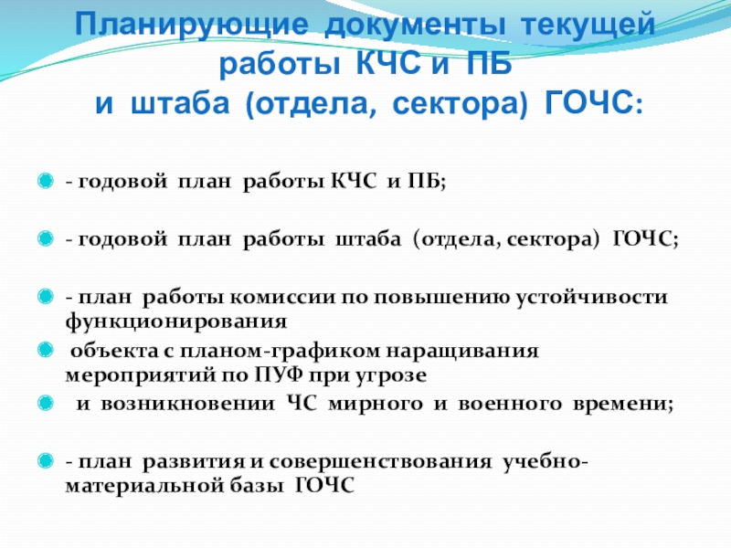 Слайд 24Планирующие документы текущей работы КЧС и ПБ
