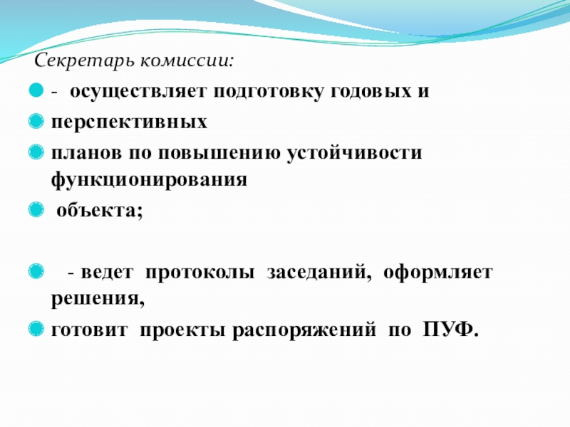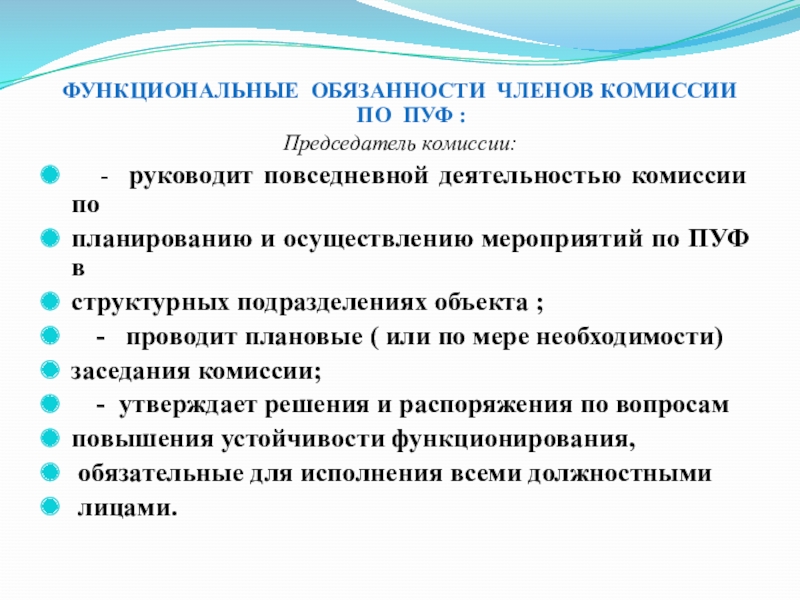 Слайд 16ФУНКЦИОНАЛЬНЫЕ ОБЯЗАННОСТИ ЧЛЕНОВ КОМИССИИ ПО ПУФ :
